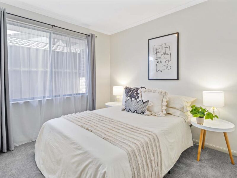 Featuring floor to ceiling built in robes in the Master and second bedroom, the plush carpet and curtains are featured in every bedroom.